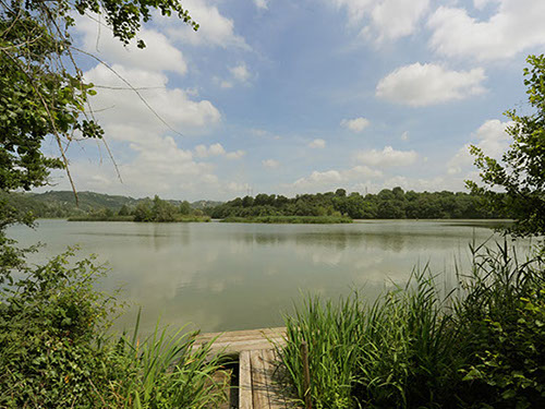 Lake of Nazzano, created upstream of the dam, populated by many birds
