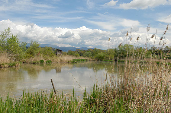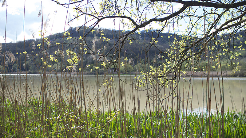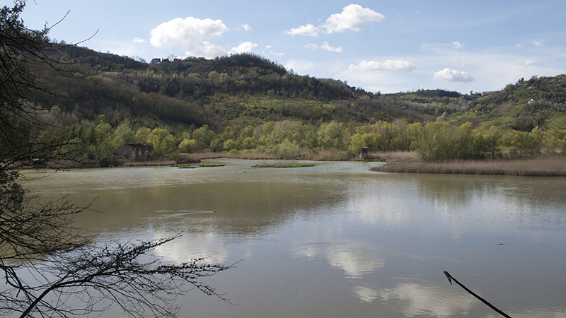 Il lago di Nazzano, creatosi a monte della diga, popolato da molti uccelli