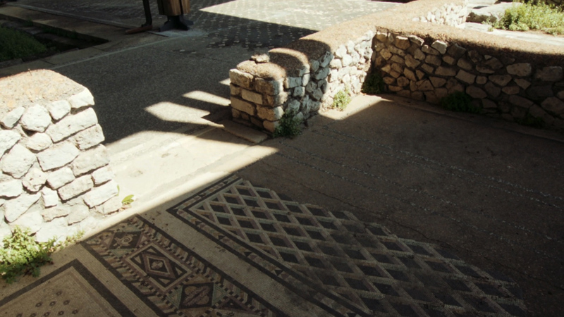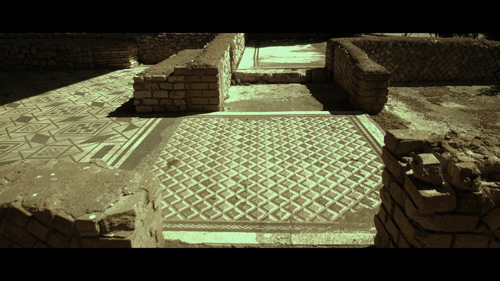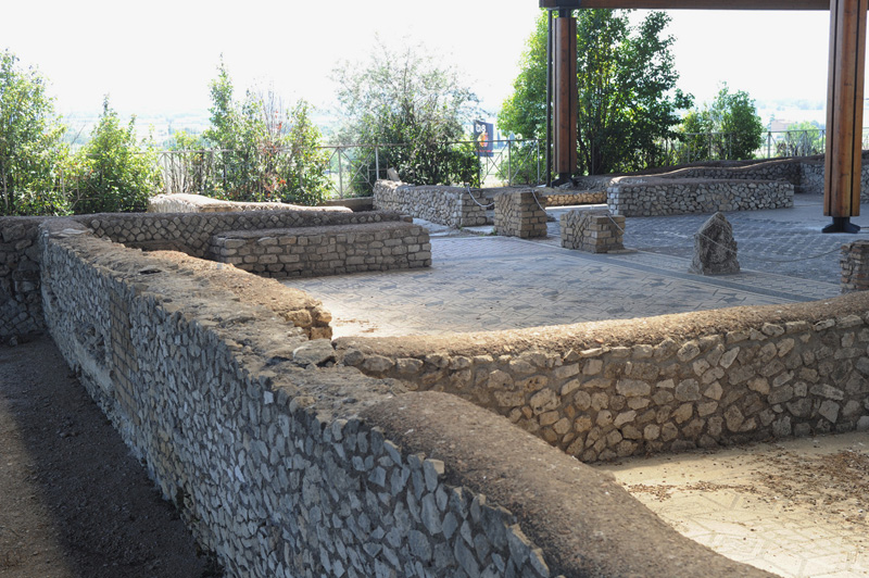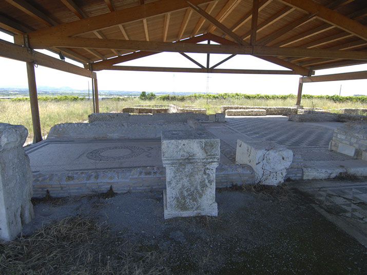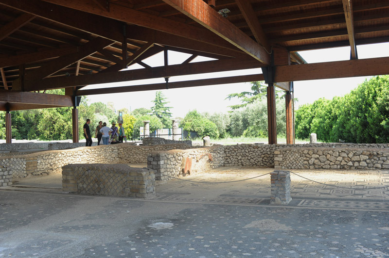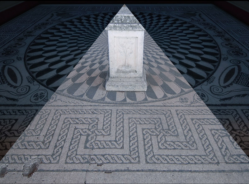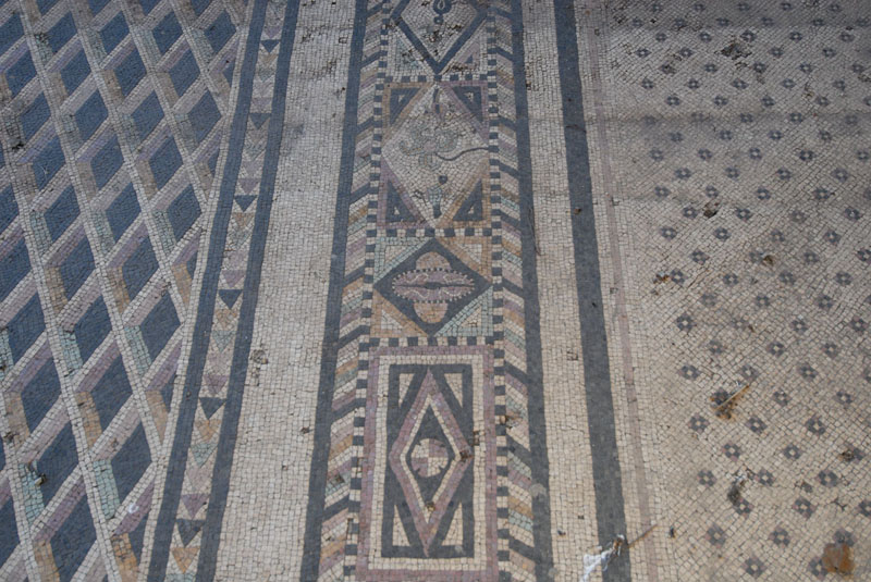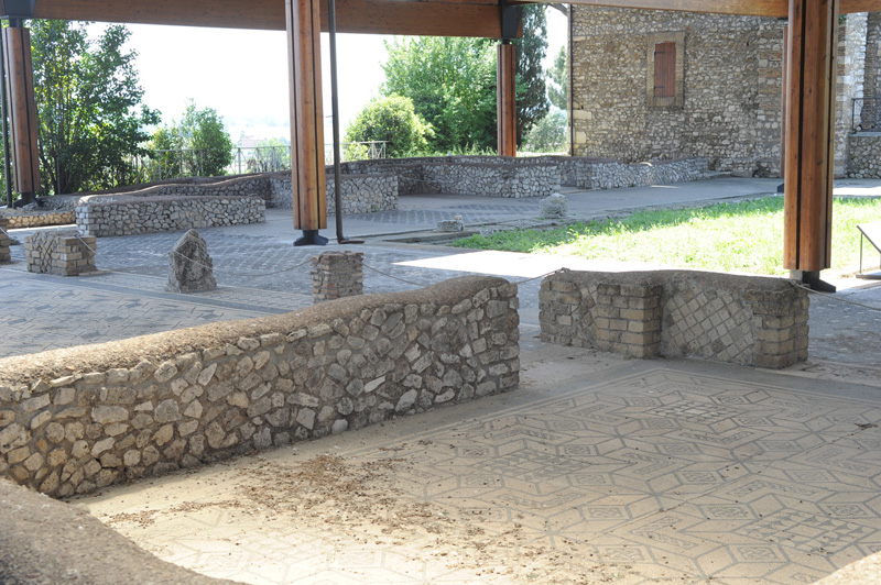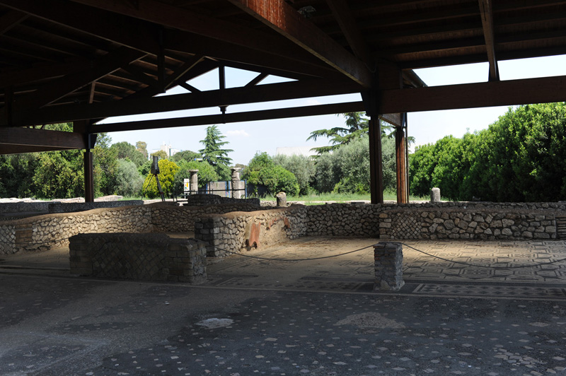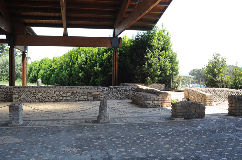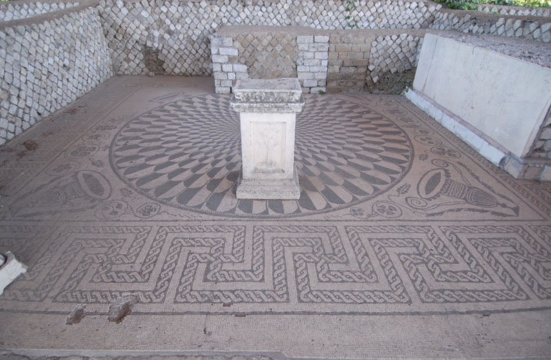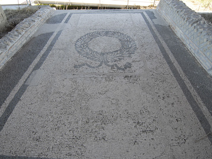 Il mosaico del presunto larario che affaccia sul grande peristilio