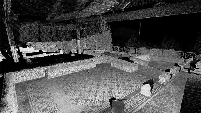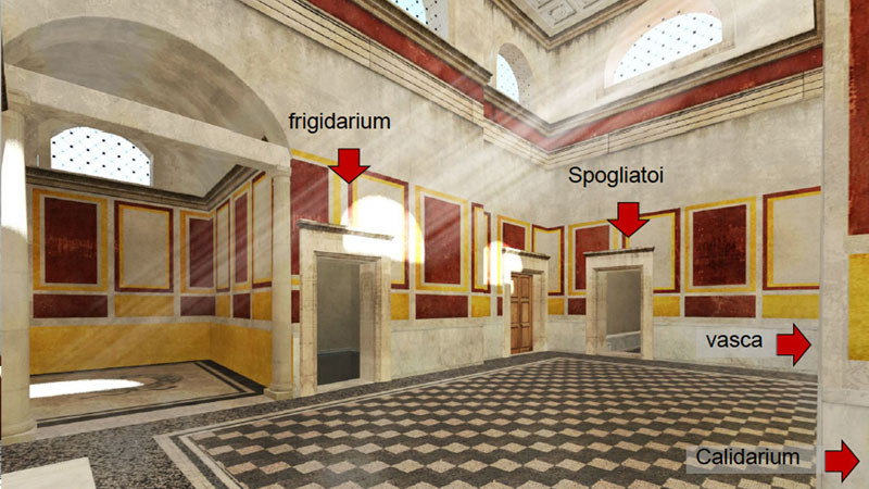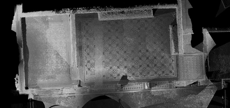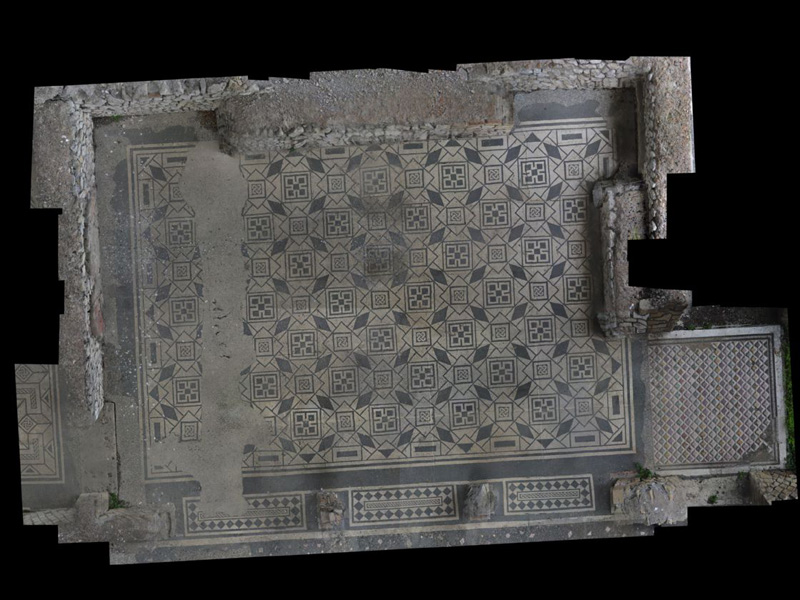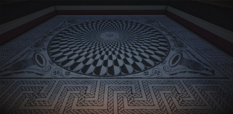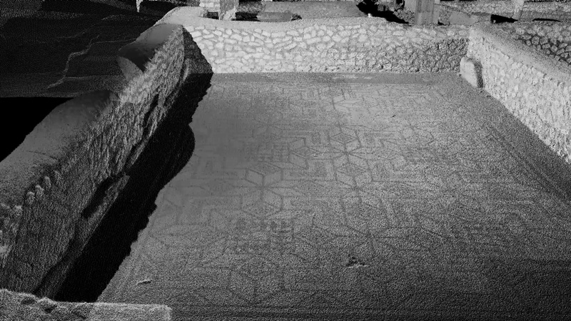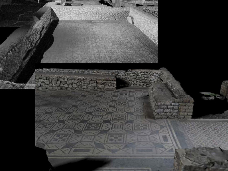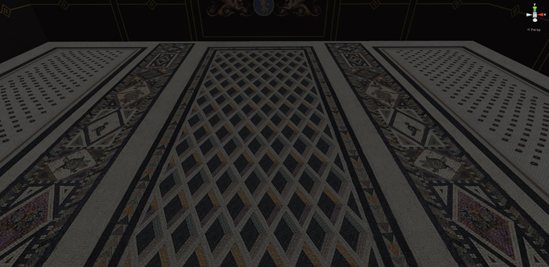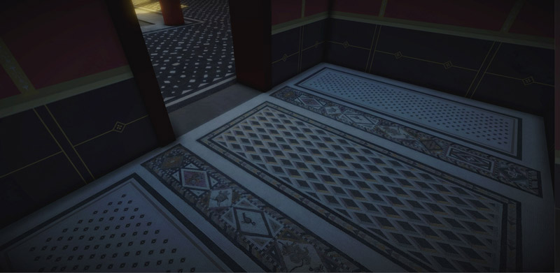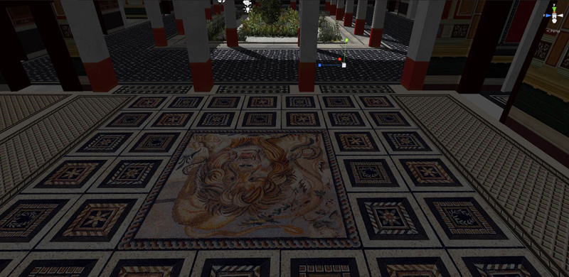 Modello 3D di un piccolo ambiente con mosaici policromi
