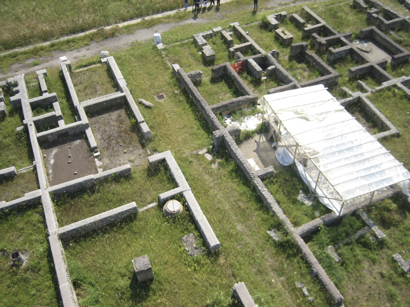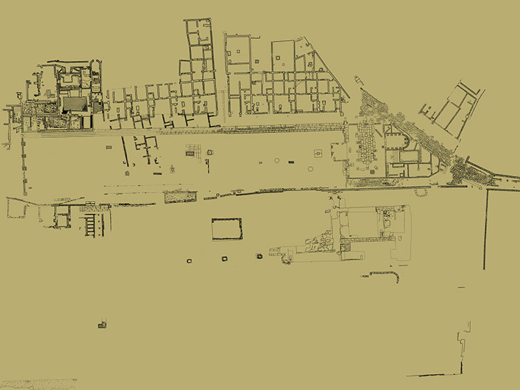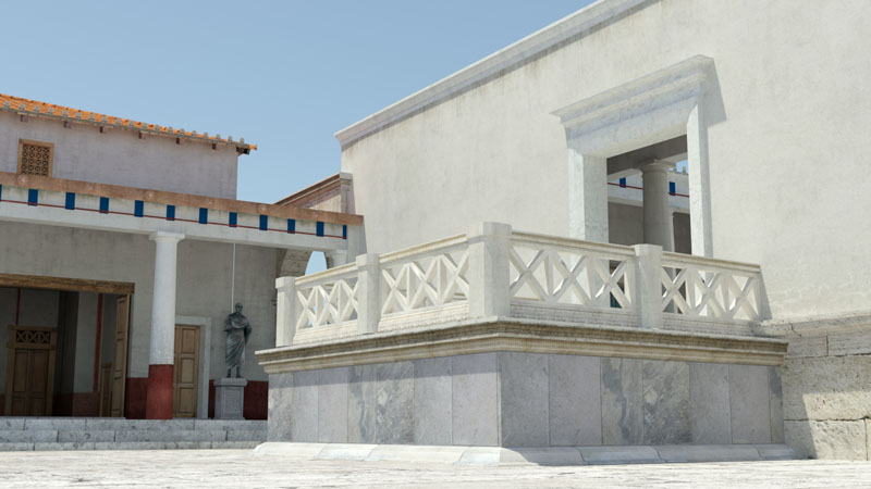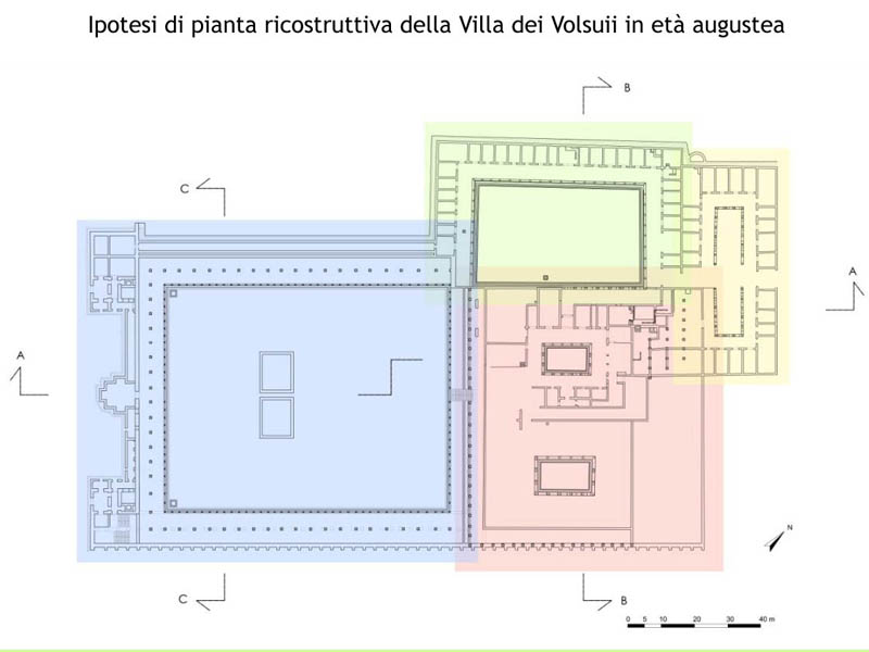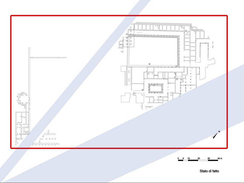Pianta ricostruttiva di età augustea. La parte in grigio