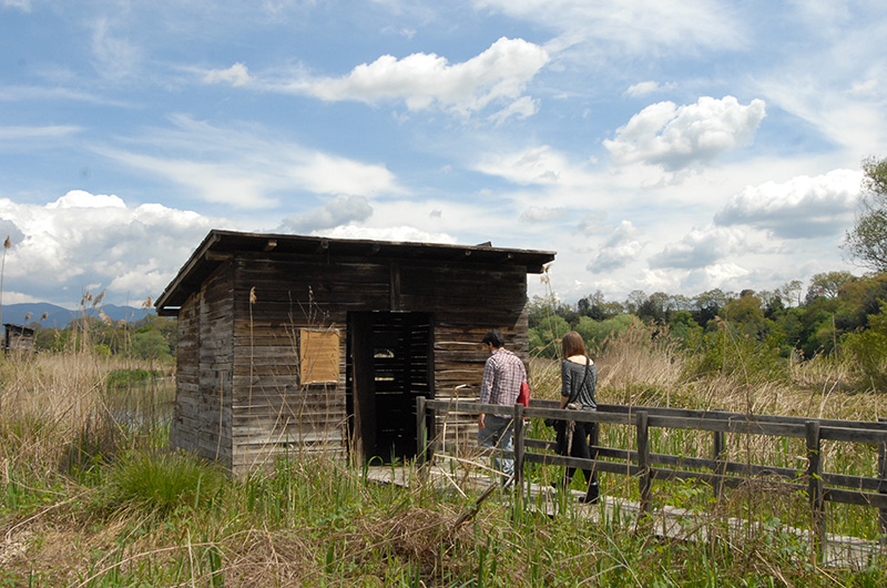 Capanno per l'osservazione degli uccelli, con apparati didattici all'interno