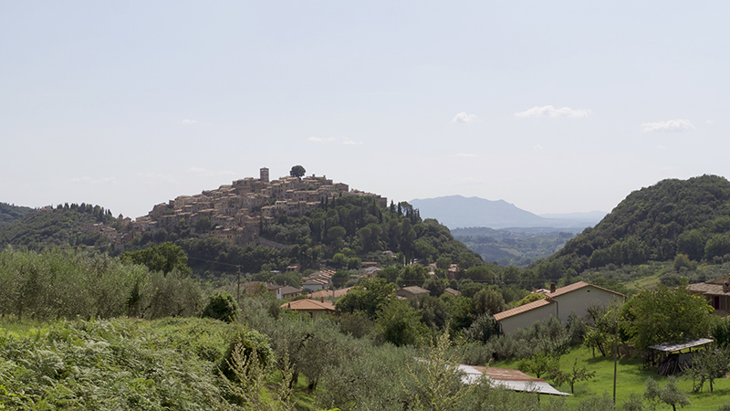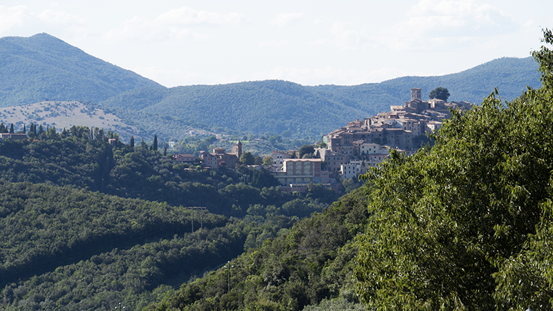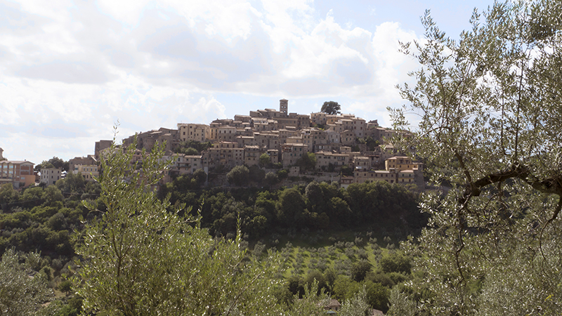 Il borgo di Toffia e, a sinistra, la cresta del monte Elci, da Fara in Sabina