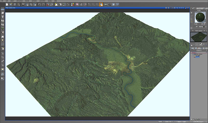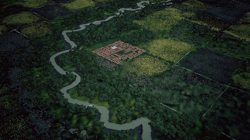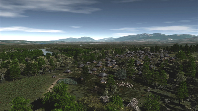 Ricostruzione del paesaggio potenziale alla fine dell'età del Ferro (VIII a.C.), (eon-Vue)