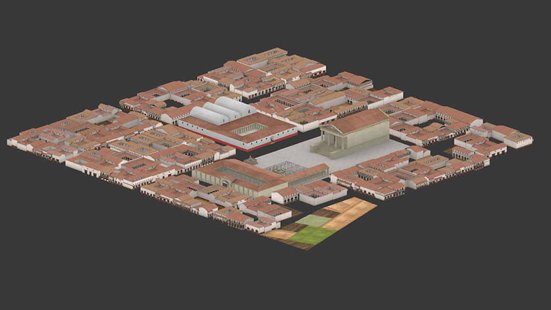 Ricostruzione possibile del sito di Lucus Feroniae in età tiberiana