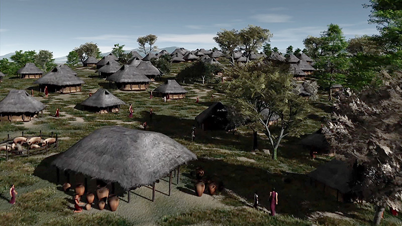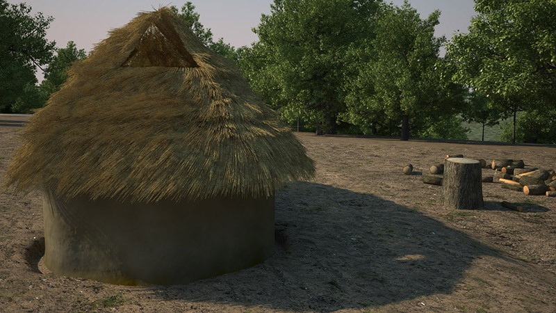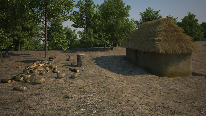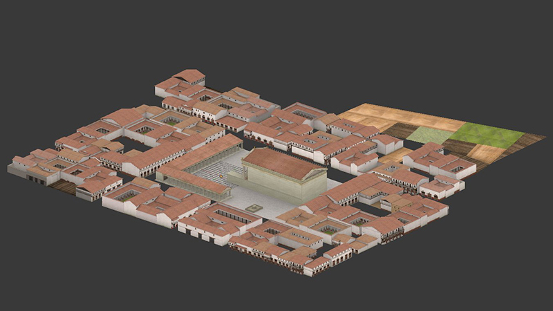 Ricostruzione di una tipica fattoria nel paesaggio agrario di età augustea