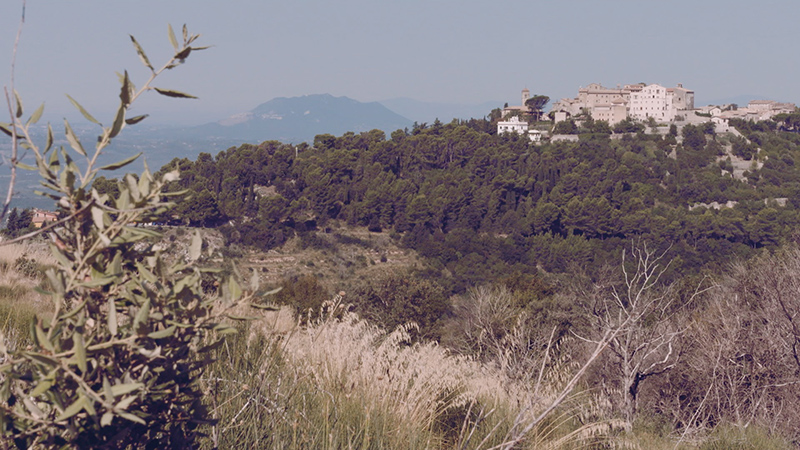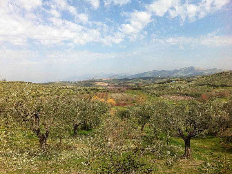 Gli uliveti della Sabina, sullo sfondo Fara e la cresta dell'Elci