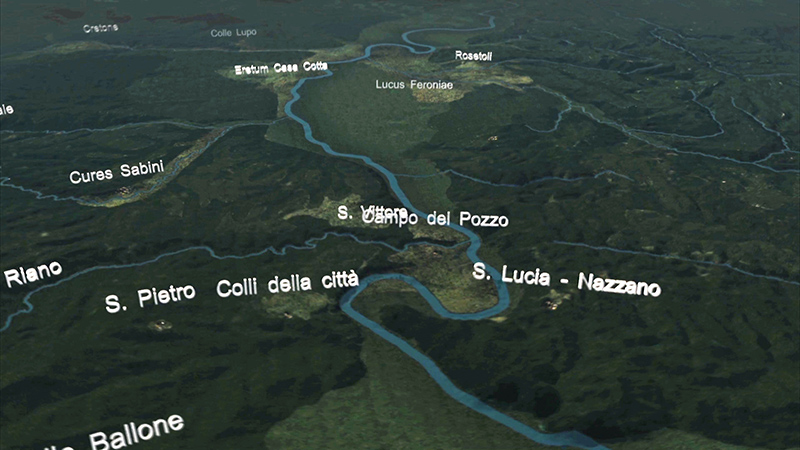 Nel Museo Virtuale della valle del Tevere il paesaggio viene raccontato attraverso un viaggio lungo 3 milioni di anni in cui alla visione olistica fa da contrappunto quella monografica. Nella visione olistica, a grande scala, esso è rappresentato e narrato secondo un approccio diacronico che include le fasi di vita presente e passate, mettendo in evidenza i processi e le relazioni dinamiche. Le visioni monografiche ci permettono di penetrare alcune situazioni esemplari, in relazione al modo di pensare e di vivere di specifici gruppi sociali in determinate epoche. Inoltre nel museo virtuale il Tevere viene narrato attraverso molteplici prospettive e la convergenza fra geologia, storia, archeologia, ecologia, paleobotanica, poesia e letteratura, iconografia e arte, ritualità e mitologia. Spazio fisico e spazio simbolico/evocativo/emozionale si intersecano continuamente: dal paesaggio fisico-geografico al quello interpretato-mappato e poi ricostruito, fino al paesaggio immaginato, interiorizzato, sognato. L’intreccio fra questi livelli ci permette di fare emergere il senso del “luogo” e, per quanto possibile, l’identità del paesaggio culturale.