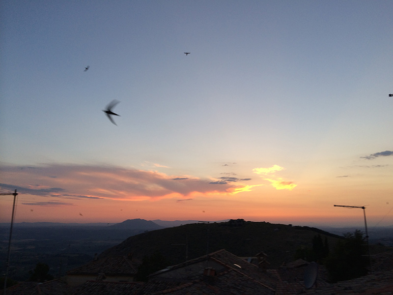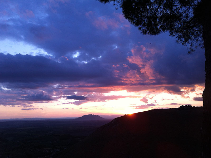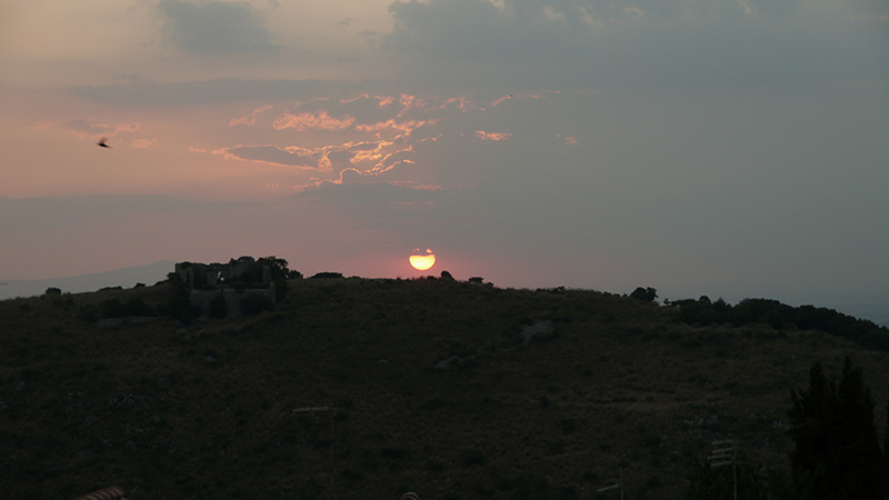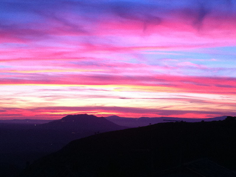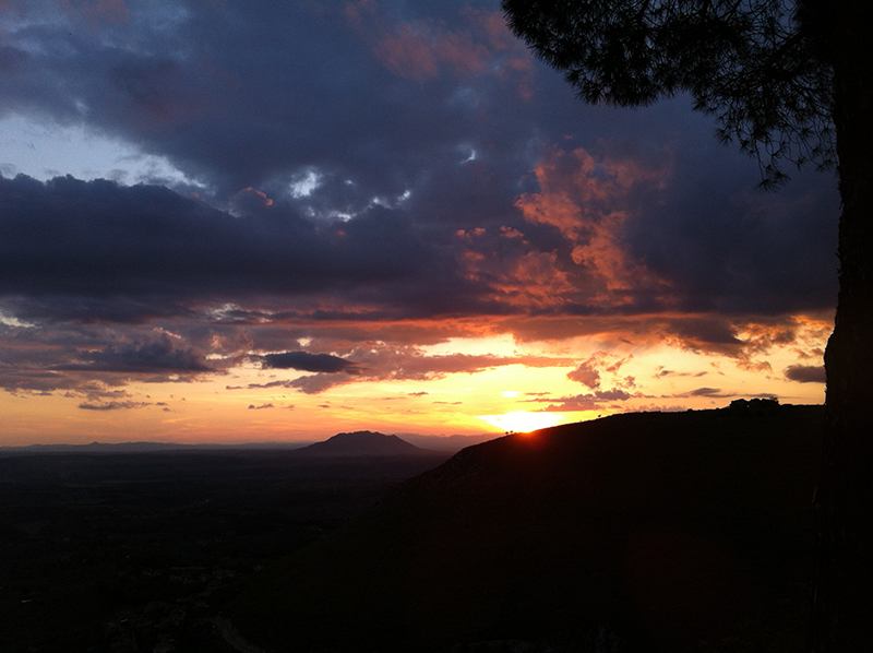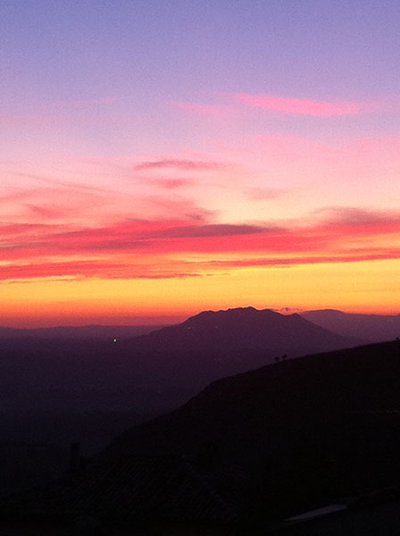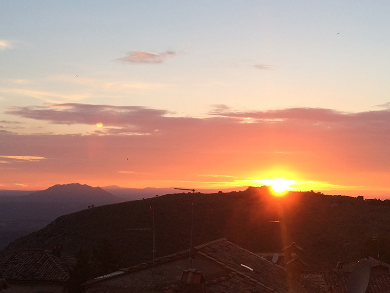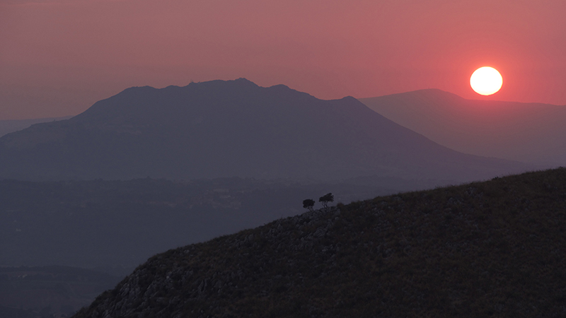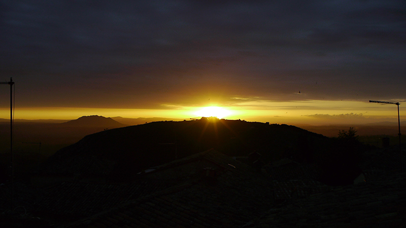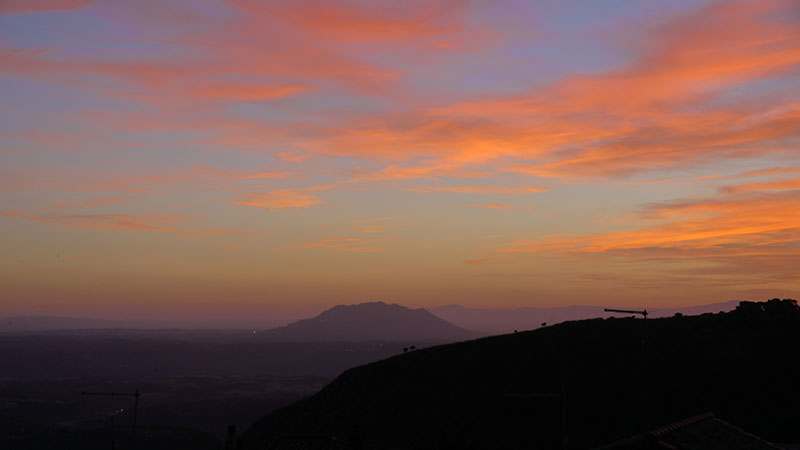 Tramonto sul Soratte e monte Acuziano visti da Fara in Sabina